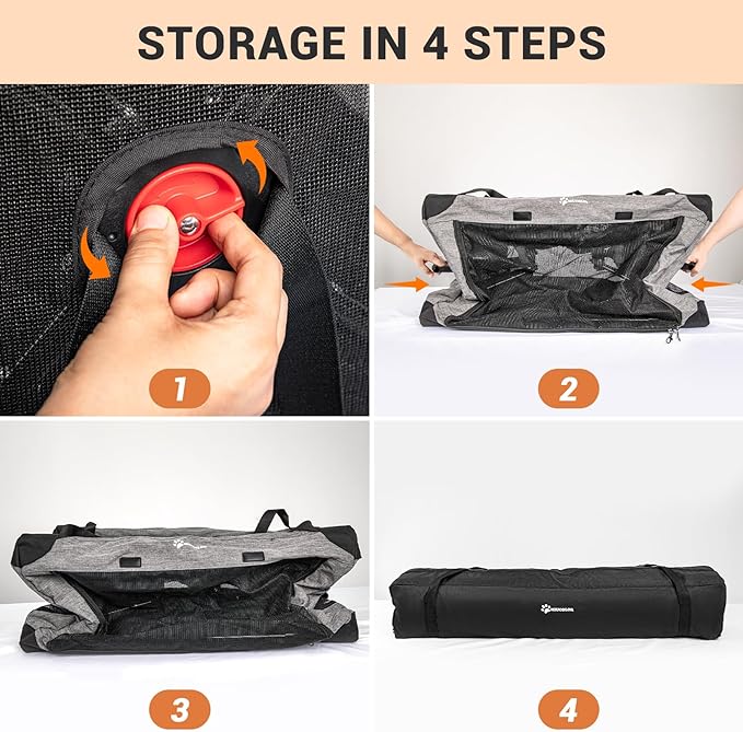• 【Quick Folding & Space-Saving】The product adopts a foldable frame, which can be easily assembled and stored in only three steps, and the installation is simple and fast.Equipped with a storage bag, you can easily carry it in the field or outdoors, providing a portable and comfortable space for your pet.
