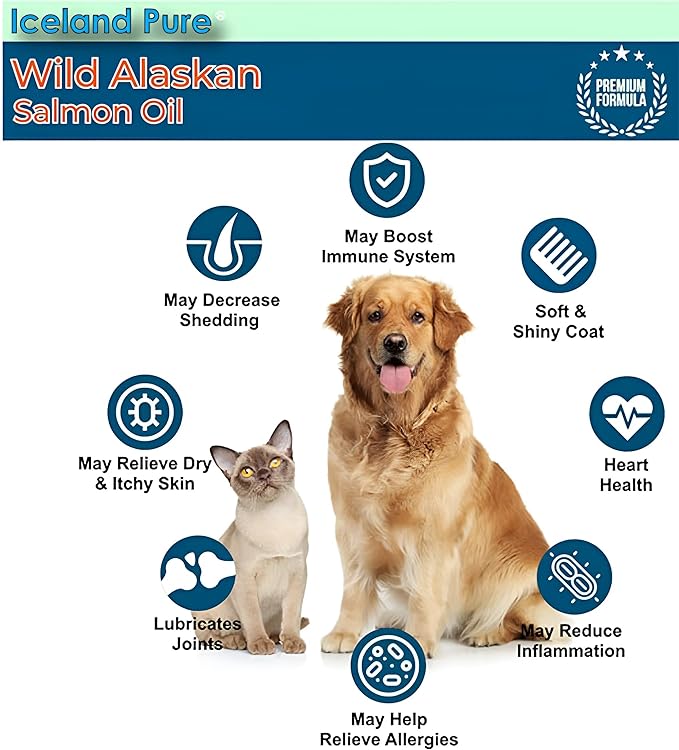 Wild Alaskan Salmon Oil for Dogs and Cats by Iceland Pure | 1,043 mg of Omega-3 per Teaspoon | Salmon Oil & Pollock Blend | BPA-Free Brushed Aluminum Epoxy Coated Bottle with Pump - 33 oz