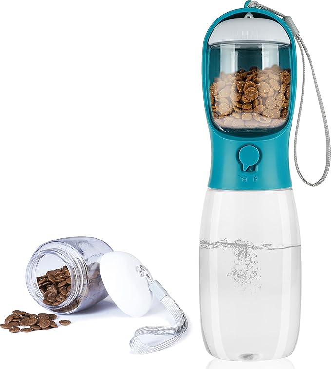 Dog Water Bottle,Portable pet Water Bottle with Food Container,Outdoor Portable Water Dispenser for Cat,Rabbit,Puppy and Other Pets for Walking,Hiking,Travel(19oz)