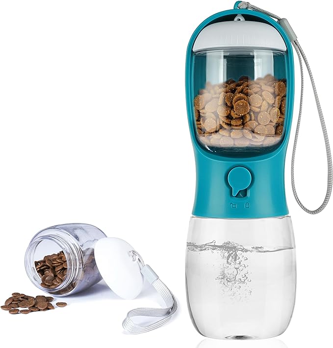 Dog Water Bottle,Portable pet Water Bottle with Food Container,Outdoor Portable Water Dispenser for Cat,Rabbit,Puppy and Other Pets for Walking,Hiking,Travel(10oz)