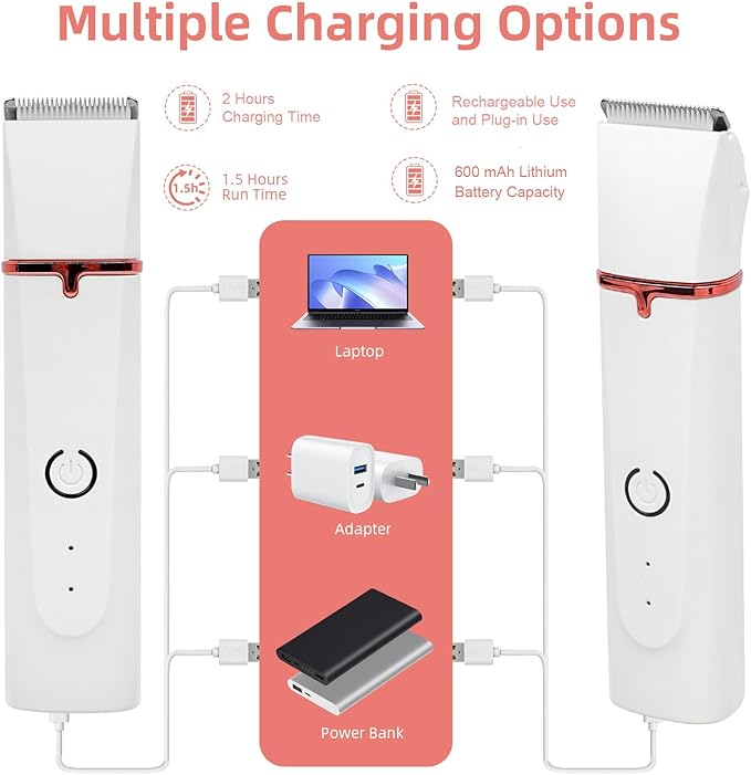 • 🔋LONG BATTERY LIFE: This paw trimmer for dogs is powered by a 600 mAh lithium battery, which can be used for 90 minutes after a 2-hour charge. The rechargeable and plug-and-play design gives you more time to trim your pet's fur and sharpen their nails.