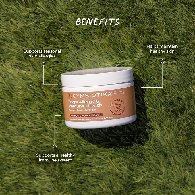 CYMBIOTIKA Dog Allergy and Immunity Supplement, Skin, Coat Health and Immune Support for Pet, Includes Omega Rich Wild Alaskan Salmon Oil, Supplements for Dogs, Salmon & Honey Flavor, 50 Chews