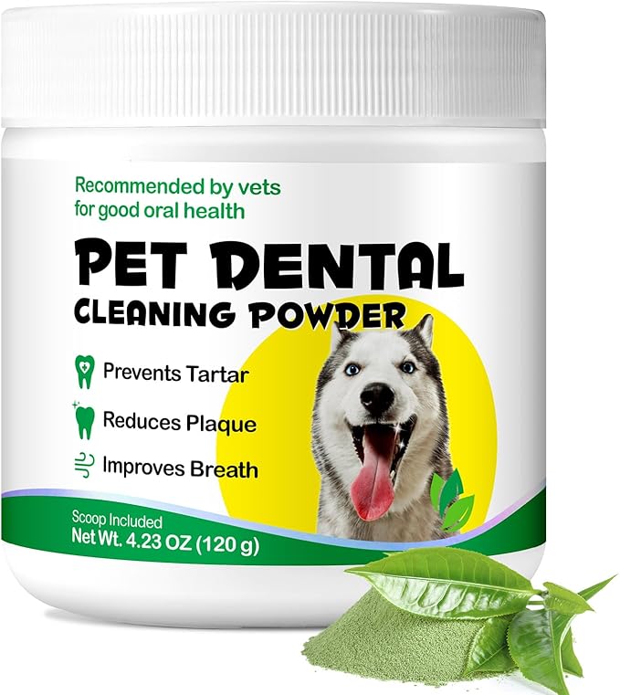 • 🐶Dental Powder for Dogss: This dental cleaning powder is perfect for promoting healthy teeth and gums, reducing tartar build-up, freshening breath, aiding digestive health, and supporting overall oral health.