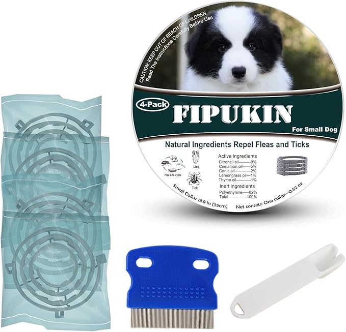 Natural Ingredients Flea Repellent Collar for Small Dogs, Safe and Effective Flea and Tick Repellent, Waterproof, 8 Months Protection Each, Free Comb and Tick Removal Tool, 13.8 Inches, 4-Pack