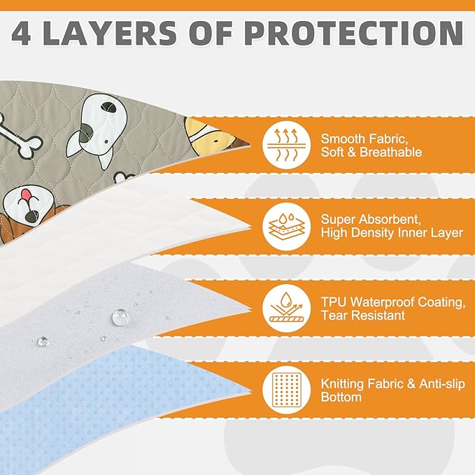 KOOLTAIL Washable Pee Pads for Dogs, 2 Packs 36*41in Reusable Super Absorbent Dog Whelping Training Pads, Crate Pads for Puppy Cages, Nonslip Waterproof Large Dog Mats for Floors Bed Playpen Car Sofa