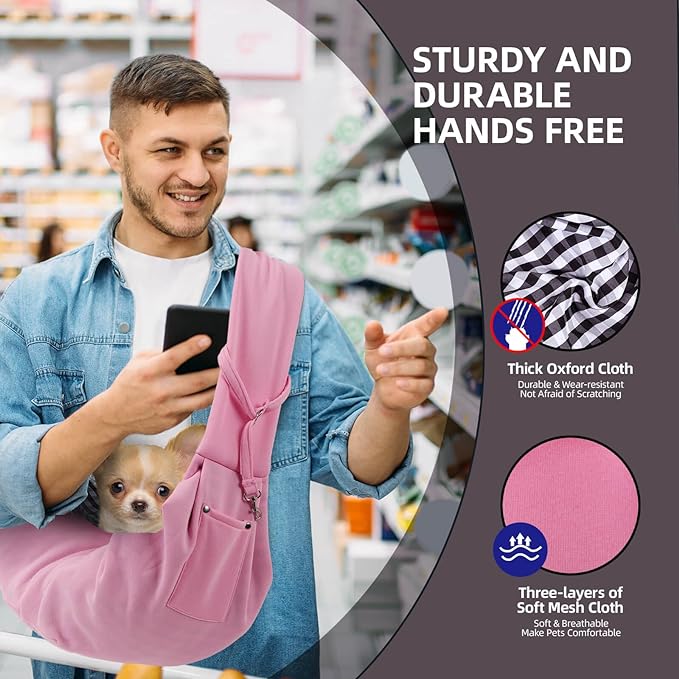 Dog Carrier Sling - Reversible Puppy Carrier Purse with Storage Pocket, Hand-Free Dog Sling Carrier for Carry Small Dogs and Cats,Travel Safety Harness, Dog and cat Harness (Pink)