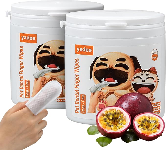 • 【Clean Teeth & Gum】-- yadee dog teeth cleaning finger wipes offer a effective and quick way to clean your pets teeth, reduce tartar and plaque build-up, freshen breath, maintain oral hygiene. Regular use up to 1-2 times per day.100pcs great value set is enough for a long time.