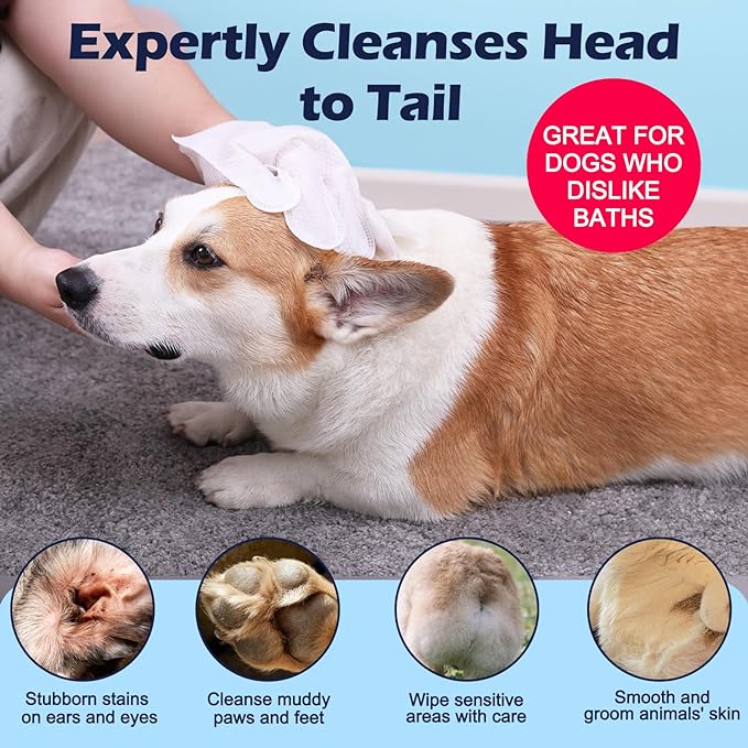 • Versatile Use: Pet glove wipes for dogs ideal for busy owners, pets afraid of water, post-surgery pets, and during travel or cold weather. These cat cleaning gloves offer a quick and convenient cleaning solution when bathing is not feasible. Perfect for a hassle-free trip with your pet.