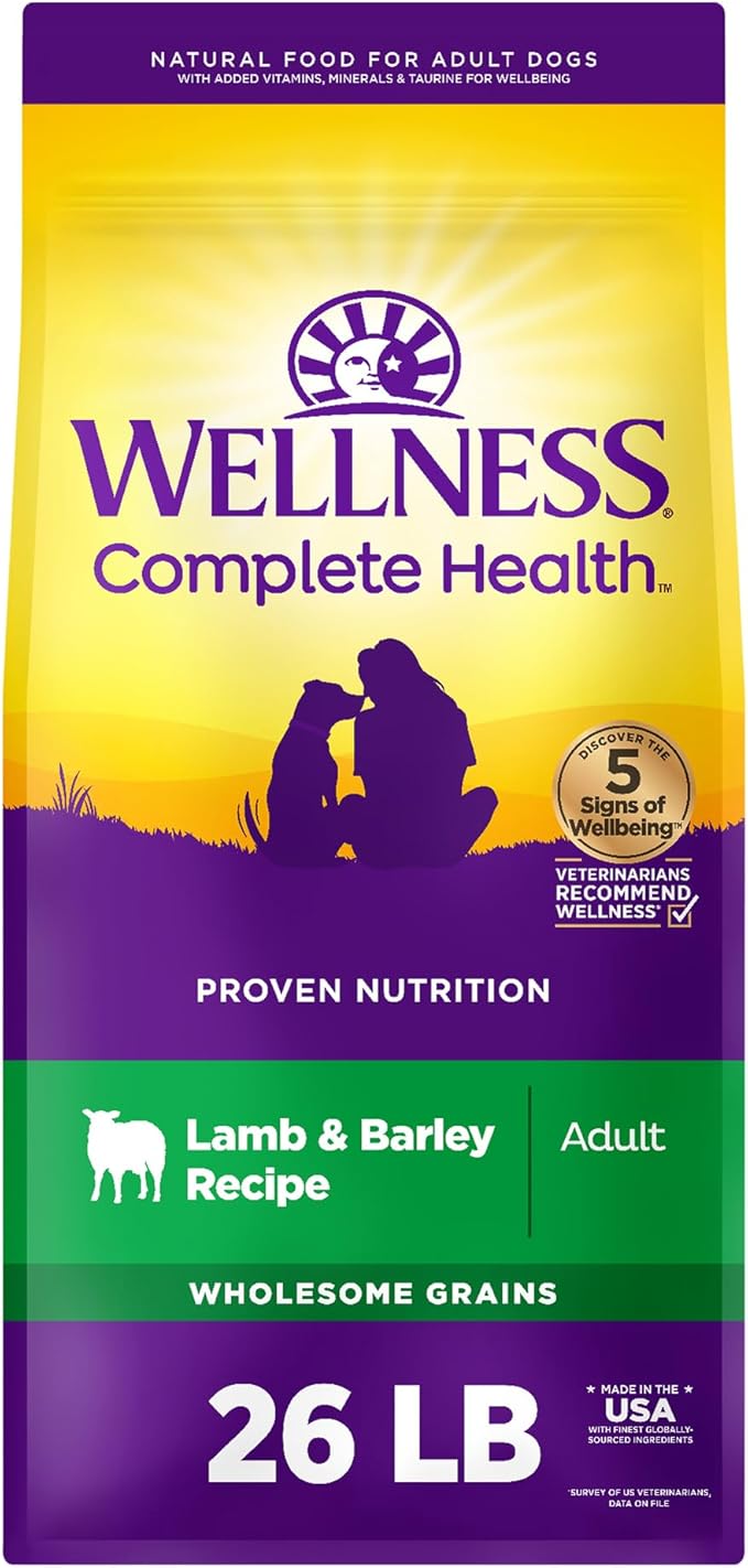 Wellness Complete Health Adult Dry Dog Food, Lamb & Barley Recipe, 26 Pound Bag