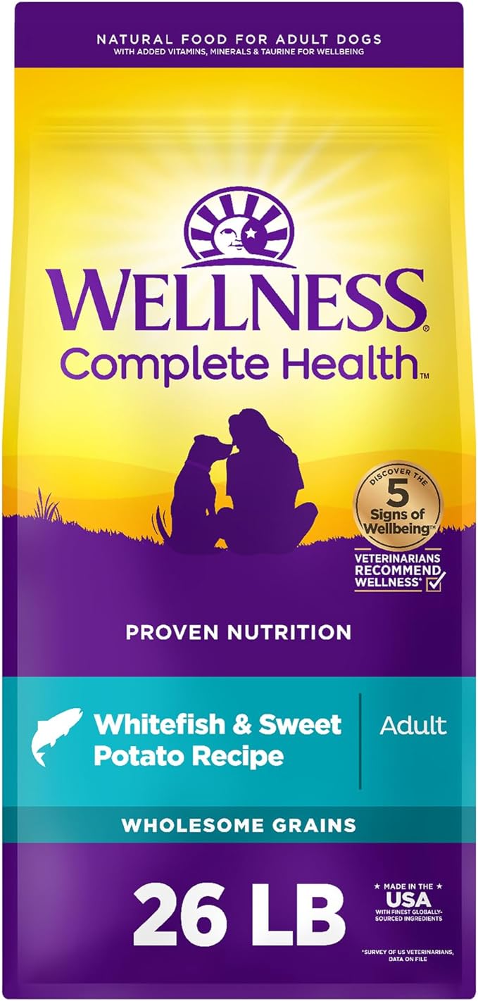 Wellness Complete Health Adult Dry Dog Food, Whitefish & Sweet Potato Recipe, 26 Pound Bag