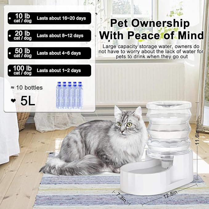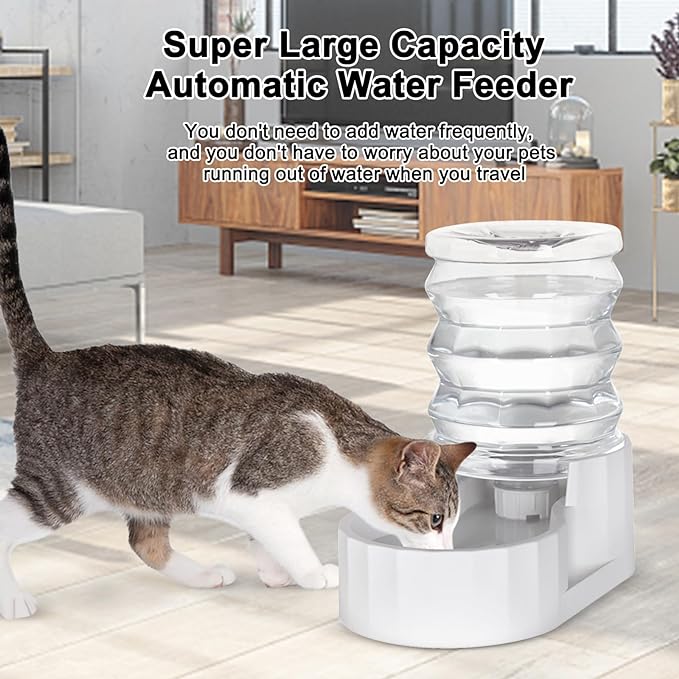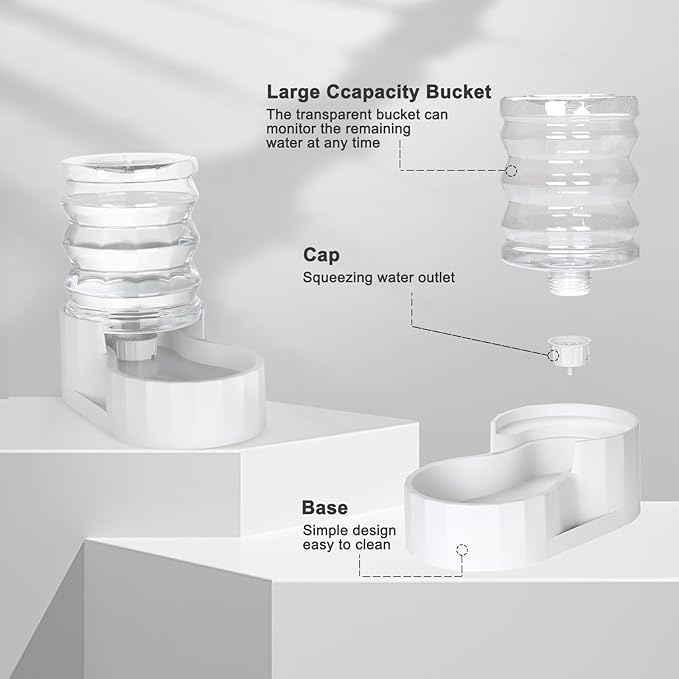 • 【Large Capacity】 This plastic pet water feeder is suitable for small and medium-sized dogs and cats, with a capacity of 5L, the large capacity can perfectly meet your pet's daily drinking needs. The feeder automatically fills with water by gravity, so you don't need to worry about your pet running out of water when you are out for a long time.