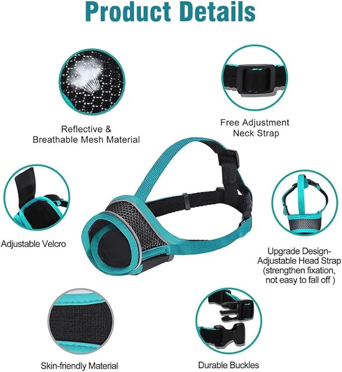 • 【Upgraded Air Mesh Technology】: The anti-bite muzzle features a new air mesh fabric that is twice as breathable and durable as regular muzzles, making it comfortable for dogs to wear even in hot summers.