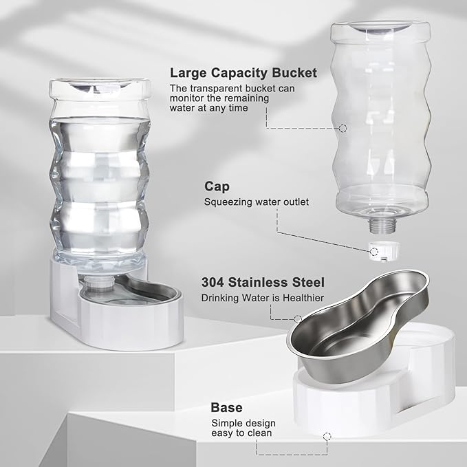 • 【No leakage】The base of the water feeder has been upgraded with a raised design to better prevent water from overflowing. The base has a non-slip design that prevents your pet from knocking the water over while drinking. The bottle and the base of the feeder are tightly bonded to prevent water leakage and bring your pet a better drinking experience.