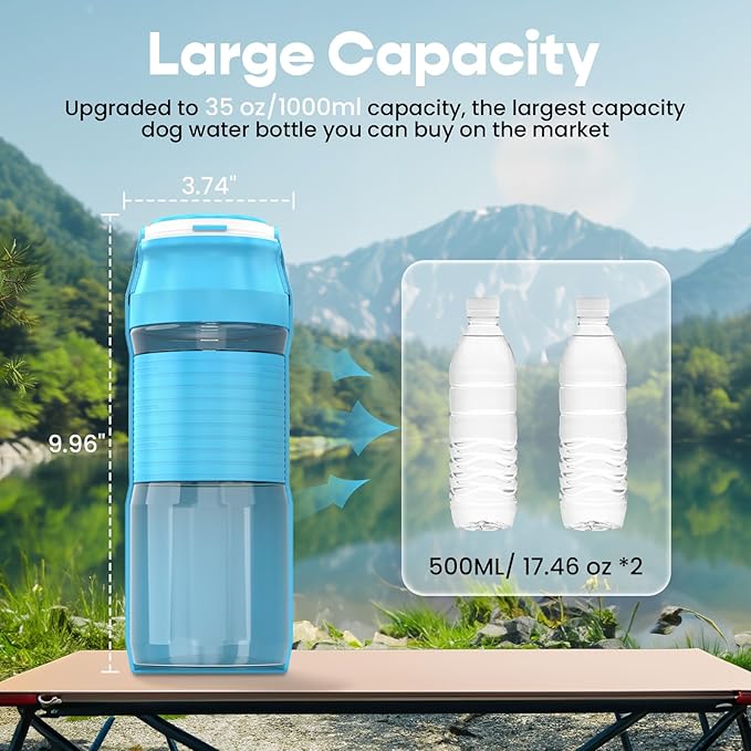 Lesotc Dog Water Bottle, 35OZ Portable Dog Water Bottle Dispenser Dog Travel Water Bottle, Leak Proof Foldable Pet Water Bottle Travel Water Bowl Dog Accessories for Dogs Outdoor Walking and Hiking