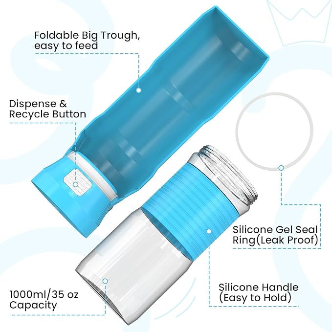 • 【Safe & Healthy】: 35OZ large water bottle for puppy small medium large dog is made from high quality food-grade materials and is eco-friendly and environmentally friendly. It with silicone materials, non-slip and easy to grip. Completely removable and easy to clean.