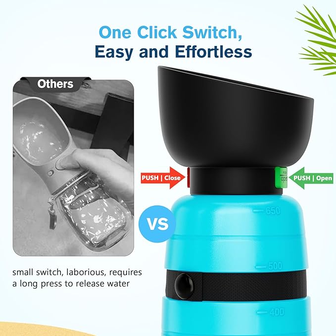 • 🐾【 EASY TO OPERATE, LEAK-PROOF 】: The 1 button unlock function and 1 hand design allow water to flow easily by pressing the dog water bottle dispenser. The upgraded locking mechanism ensures it doesn't leak, so you don't have to worry about any spills.