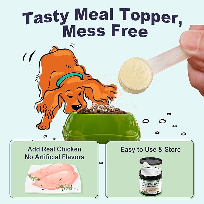 Omega 3 Fish Oil for Dogs, Dog Fish Oil Powder, Wild Caught Fish Oil, EPA&DHA, Krill Oil, Kelp, Dog Skin and Coat Supplement, Anti Itch & Shedding, Support Dry Skin, Joint Health, 85 Servings