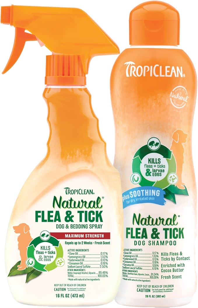 Natural Flea & Tick Soothing Shampoo & Bedding Spray Bundle | Flea & Tick Prevention | Dog Shampoo | Flea & Tick Treatment Protects & Repels | Made in The USA