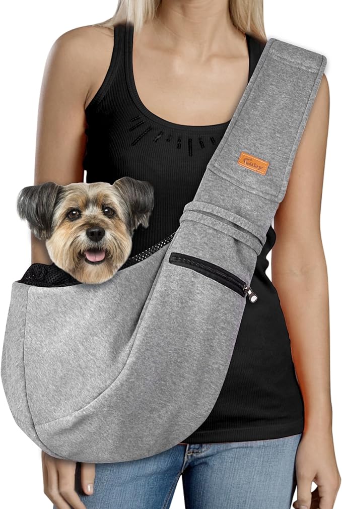 CUBY Dog and Cat Sling Carrier - Small Dog Carrier Sling with Adjust Strap & Zip Pocket, Hands Free Soft Dog Slings for Small Dogs Cats Puppy Pets Outdoor Travel Safety Purse Bag (Silver Grey)
