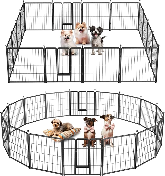 HealSmart Dog Playpen Indoor, Puppy Playpen Indoor for Yard, Camping, 24" Height 16 Panels Heavy Duty Dog Pen for Puppies/Small Dogs, Black