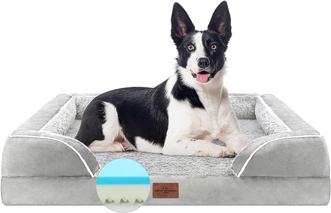 Orthopedic Memory Foam Dog Bed, Cooling Dog Bed, Waterproof Dog Beds for Large Dogs, Washable Dog Bed with Removable Cover,Pet Bed Dog Sofa with Bolster(Large,Light Grey)