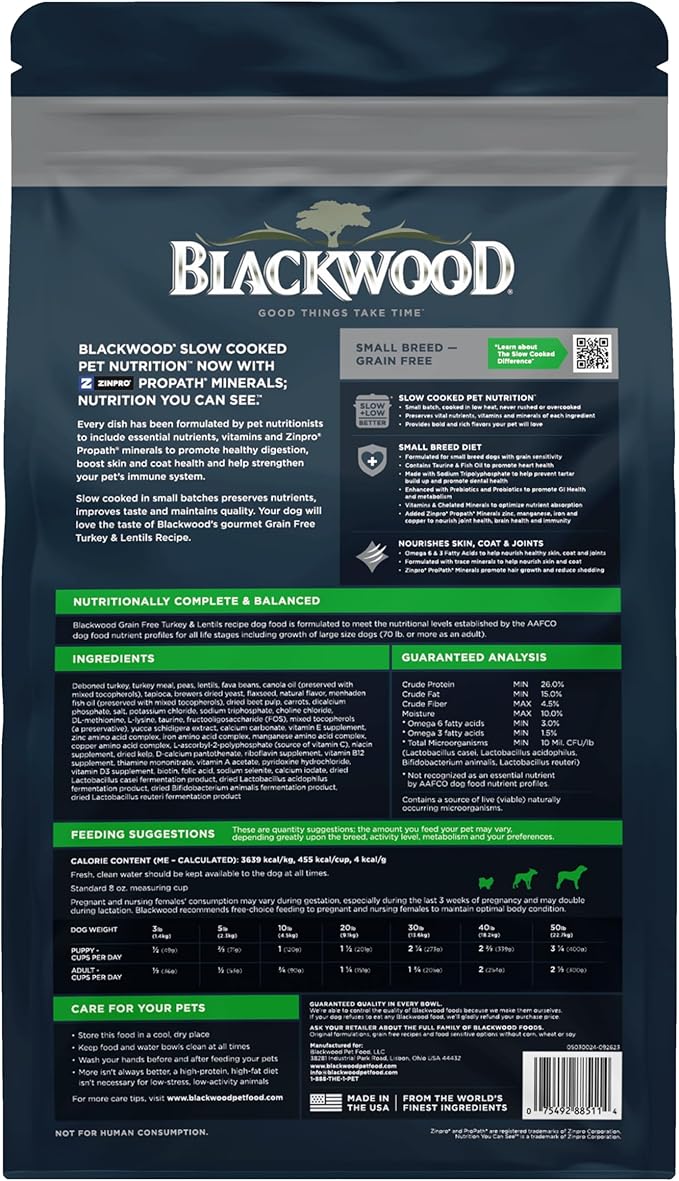 Blackwood Grain Free Small Breed All Life Stages Turkey & Lentils Recipe, 24 lb. bag