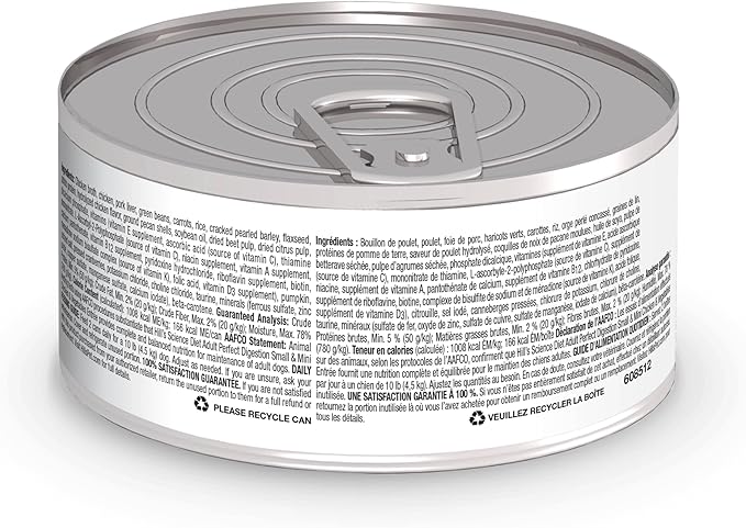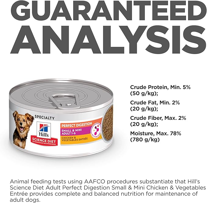 Hill's Science Diet Perfect Digestion, Adult 1-6, Small & Mini Breeds Digestive Support, Wet Dog Food, Chicken & Vegetables Loaf, 5.8 oz Can, Case of 24