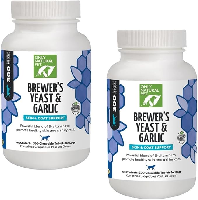 Only Natural Pet Brewer's Yeast & Garlic Chewables - All-Natural Flea & Tick Prevention for Dogs - Fortified with B Vitamins - Promotes Healthy Skin & Coat - 300 Count Tablet (2 Pack)