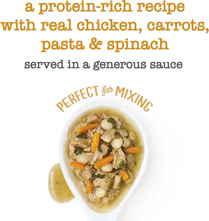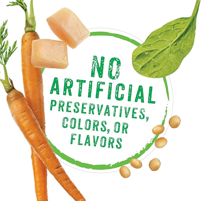 • Contains real chicken. Carrots. pasta and spinach offer ingredients you can see