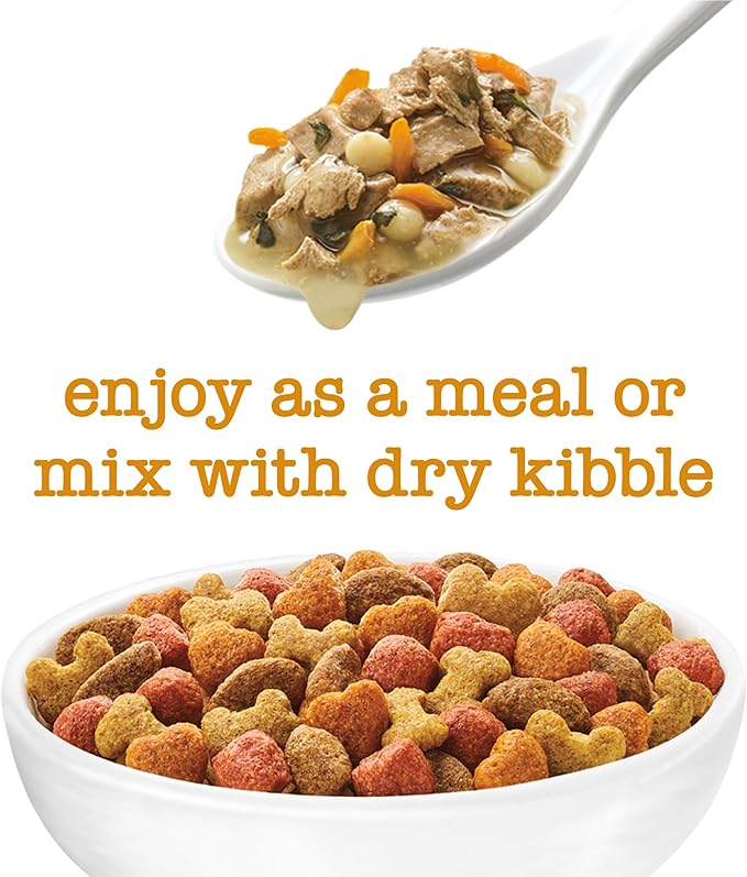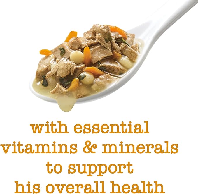 • Delivers essential vitamins and minerals to support your dog's overall health. Chunks of chicken offer an appealingly tender texture
