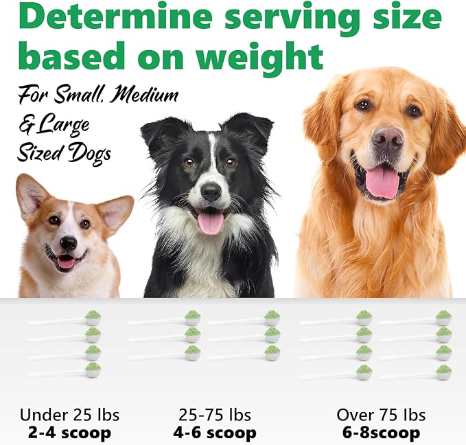 • For All Breeds Ages & Sizes Dogs - Comes with a powder scoop, providing a healthier oral care for dogs of all breeds, ages and sizes. Just add the appropriate number of scoops to your dog's daily meals. For dry kibble, moisten the food before sprinkling the powder.