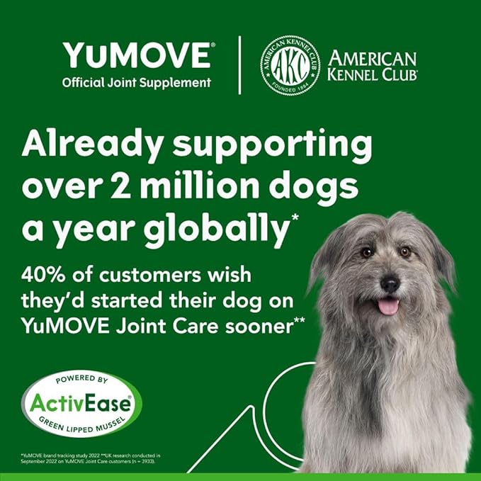 • FOR BEST RESULTS: YuMOVE joint supplements for dogs work best in aiding your dog's natural joint health when taken regularly and continuously. If new to YuMOVE, double the feeding amount on the bottle for the first 4-6 weeks for optimal results. Although our products contain natural ingredients, we recommend that you consult with a veterinarian before