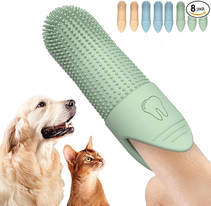 360° Dog Toothbrush Kit 8-Pack 3pcs Green 3pcs blue 2pcs beige Dog Tooth Brush Finger Cleaning Food Grade Silicone Fits Most Fingers Toothbrush for Dogs & Cats Dental Care