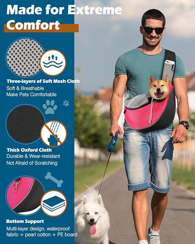 • 【Multiple Pockets】Dog carrier sling has zippered pocket on the back that can be used for daily supplies. The shoulder strap side pocket can be used to place mobile phones within 6.1 inches, and the D-buckle can be used to hang foldable bowls, keys, and other small items. With strong storage performance, the dog carrier bag is designed with the right mesh pocket.