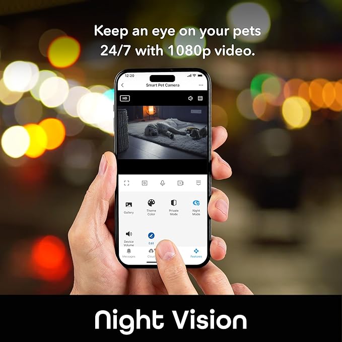 • Clear Night Vision & Motion Detection: The built-in night vision camera with 1080p resolution provides clear visibility in low light. Enable motion detection for alerts on pet activities, ensuring round-the-clock monitoring.