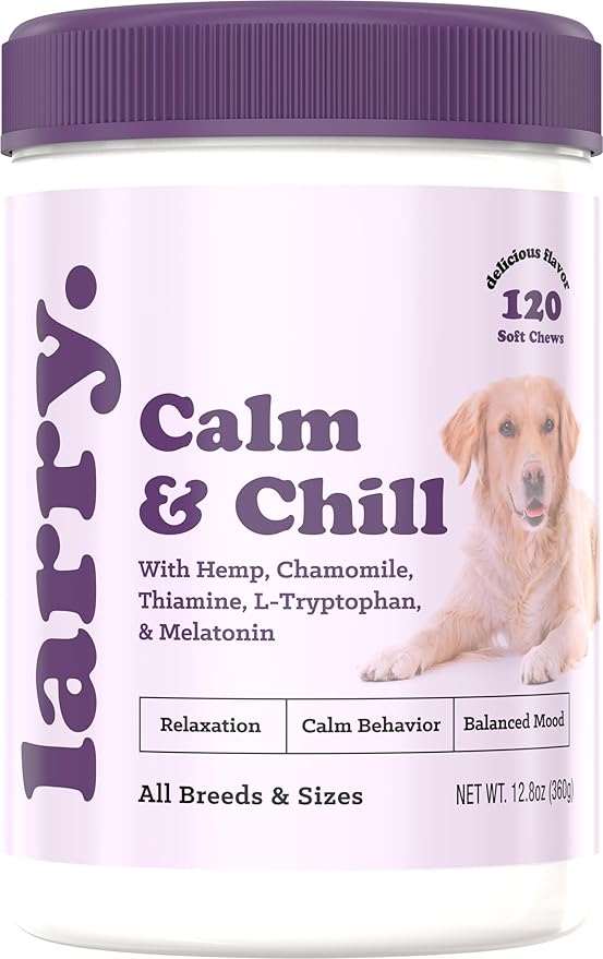 Larry Calming Dog Chews for Anxiety Relief, All-Natural Ingredients, Delicious Flavor, No Drowsiness, Made in The USA