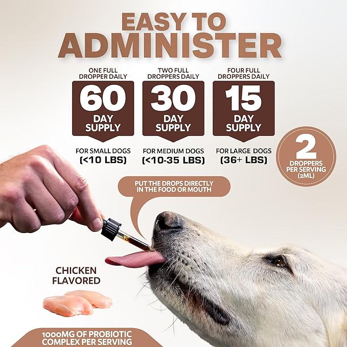 • DELICIOUS CHICKEN FLAVOR - Effortlessly support your dog's gut health with a simple application process for busy pet parents. Save time, nurture your pet! Make life easier for you and your furry companion with our user-friendly drops that seamlessly integrate into your daily routine.