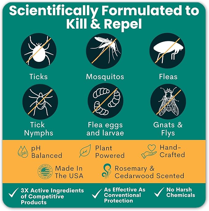 • ✅ SUPERIOR AFFORDABLE EFFECTIVENESS: Our formula contains 3X the active ingredients of similar natural products, delivering superior, long-lasting protection against fleas, ticks, mosquitos and other pests. Enjoy exceptional pest control at a fraction of the cost of our competitors.