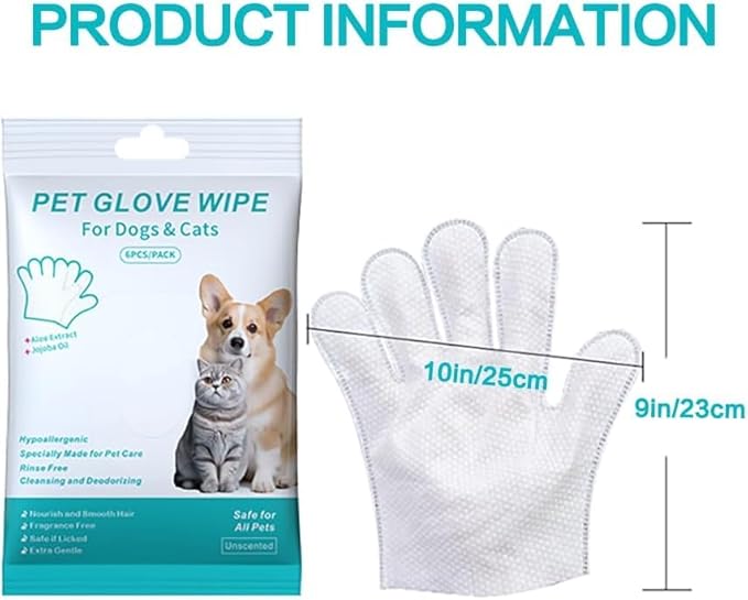 • ʕ̯͡˔̯᷅ʔ【Dog Cat Cleaning & Deodorizing Glove Wipes】Size: 10X9in(25X23cm). Specially designed for pets cleaning and deodorizing, effectively and quickly remove odor, dirt, dander. Nourishing and grooming cats and dogs fur, giving pets a healthy shine coat. Quick and easy bath alternative.
