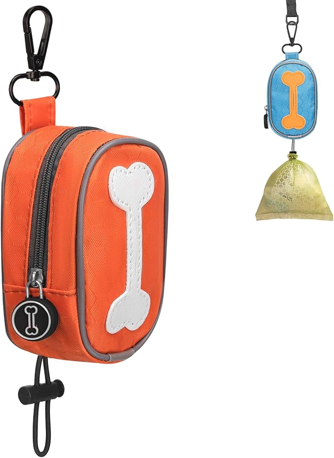 Hands Free Dog Poop Bag Holder for Leash with Big Opening, Dog Poop Bag Holder, Zippered Pouch with Carabiner Hook Waterproof Dog Poop Bag Holder(1 Doggy Bag) (Orange)