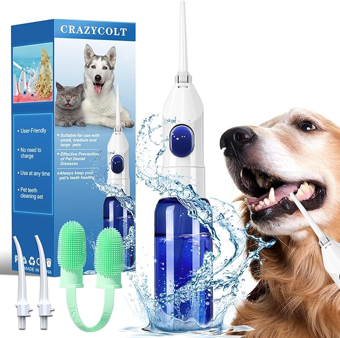 • 🐶😽【Loved By Dogs and Cats】Our pet manually tooth cleaner kit is designed with a manual press, saving you time and energy. No need to charge, you can clean your pet teeth anytime, anywhere. Use with a dog toothbrush or cat toothbrush. Dog tooth brushing kit effortlessly removes tartar and food residues from any place, ensuring thorough cleaning and dental care for your pet family.