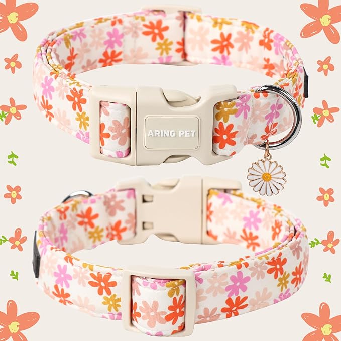 ARING PET Summer Dog Collar-Cute Dog Collar for Small Dogs, Adjustable Cotton Sunflower Pet Collars Puppy Collar for Small Medium Large Dogs