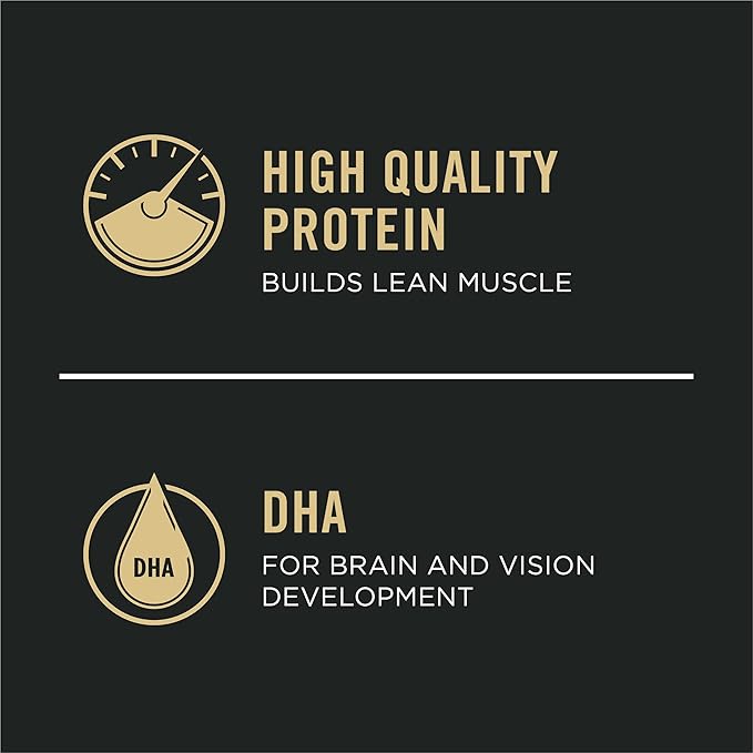 • Purina Pro Plan dog food for puppies offers a great taste with chicken as the first ingredient while providing the high-quality protein he needs to build lean muscles