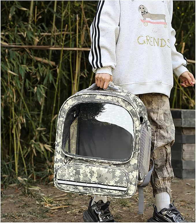 Cat Backpack Carrier for Cats and Small Dogs, Breathable Cat Bubble Backpack, Airline Approved Pet Travel Carrier for Hiking Camping & Outdoor(CamoGrey)