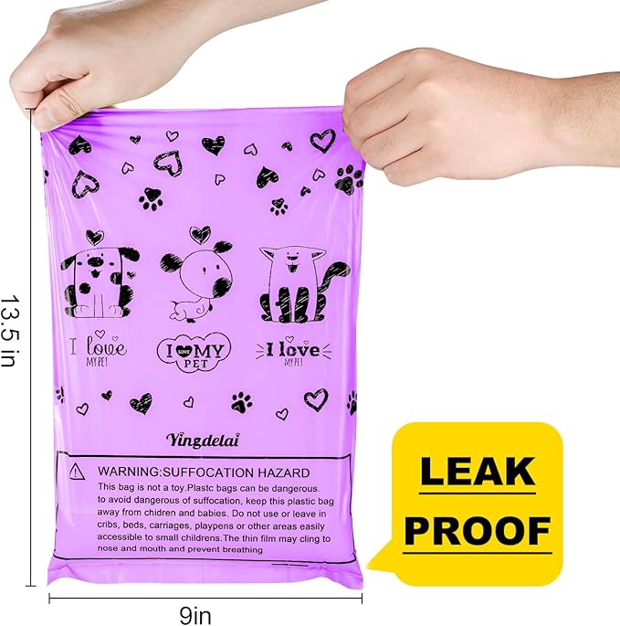 • 💪【 Leak Proof & Strong】Each dog poop bags are measure 13.5 x 9 inch, which large enough to tie and pick up more pet poops. The poop bags for dogs are durable and leak-proof. No more worry for have feces on bare hands because of rips.