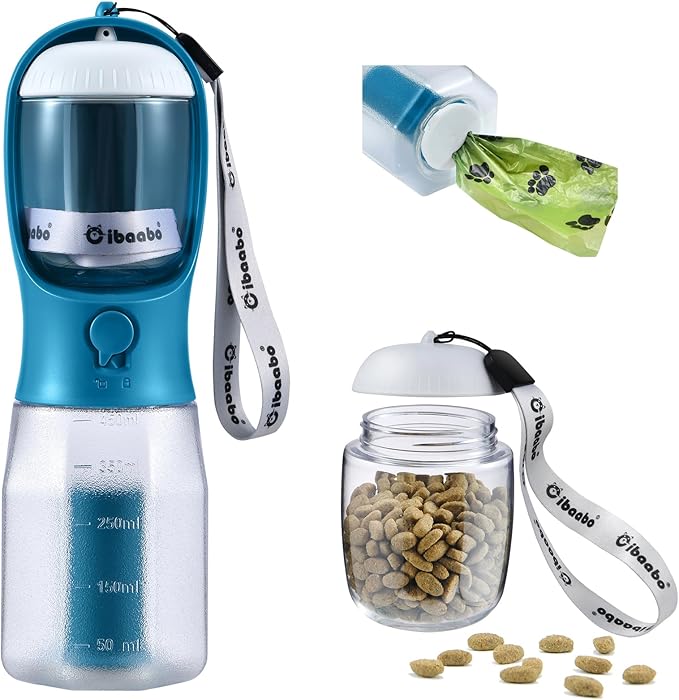 Dog Water Bottle with Food Container & Poop Bag Holder, Travel Water Bowl, Portable Pet Dispenser, Dog Stuff Accessories Items, Puppy Essentials Necessities for Yorkie Chihuahua Walking Hiking
