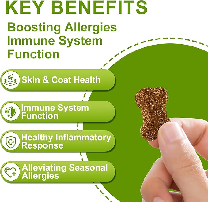 • IMMUNE & HEALTH SUPPORT: These dog allergy chews provide allergy and immune support for dogs, regulating immune responses, reducing allergic reactions, and alleviating itching and skin irritation with carefully selected premium ingredients.