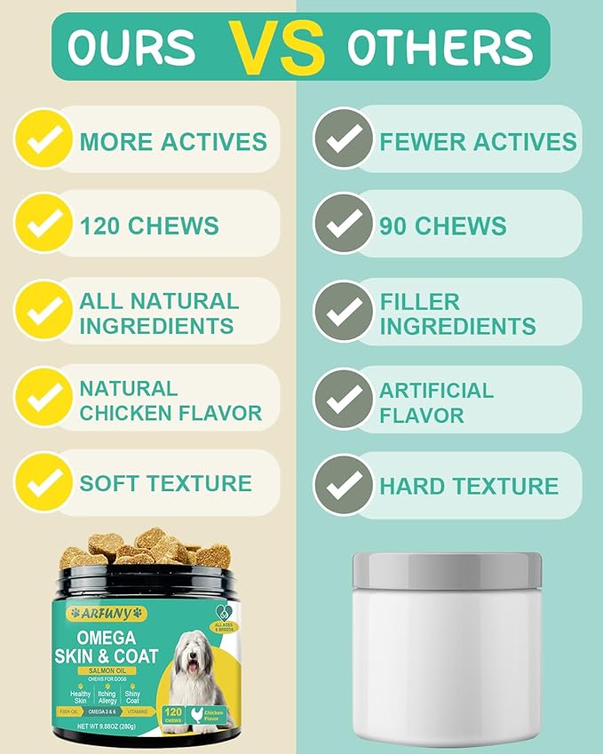 • 【Omega Supplements for Dogs】Our fish oil supplement nourishes your dog's skin and coat, promoting a healthy and resilient appearance. It helps maintain skin's moisture, reducing dryness and flakiness for a soft, supple coat.