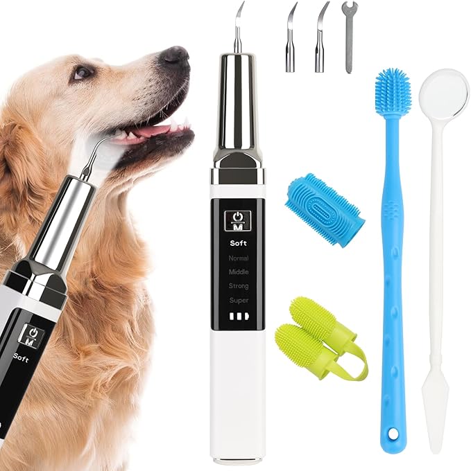 • SAFE&PROTECTIVE: With latest intelligent ultrasonic technology,our ultrasonic plaque remover machine is able to figure out the dog gum and the teeth.When touching gum or soft material,it will stop working,able to clean the plaque and calculus and tartar on the dog and cat teeth without harming the gum.Quiet and safe and more acceptable for your beloved pet.