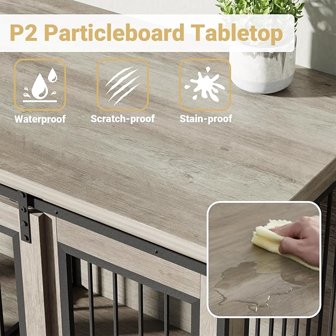 • 【Dog Crate TV Stand】With an oversized tabletop, measuring 61'' W x 23'' D, 1.26'' thick and can bear 300 pounds. It is also a TV stand.